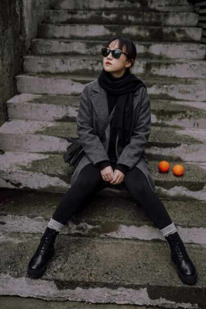 灰毛呢西裝大衣