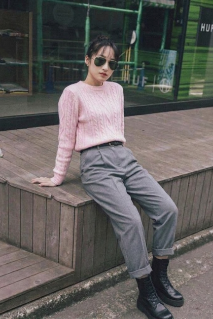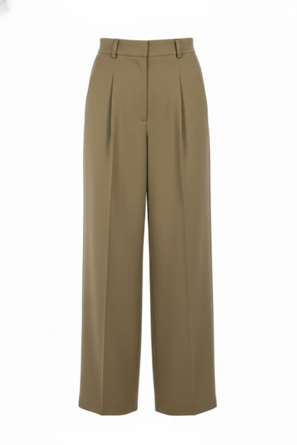 橄欖綠打褶直筒寬褲