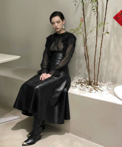 復古修身蛇紋皮革裙