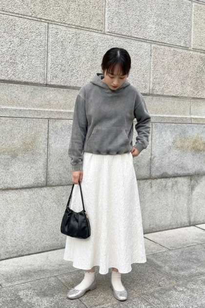 立體壓褶紋理高腰長裙