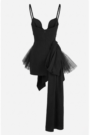 不規則抓皺拼接網紗細肩帶洋裝