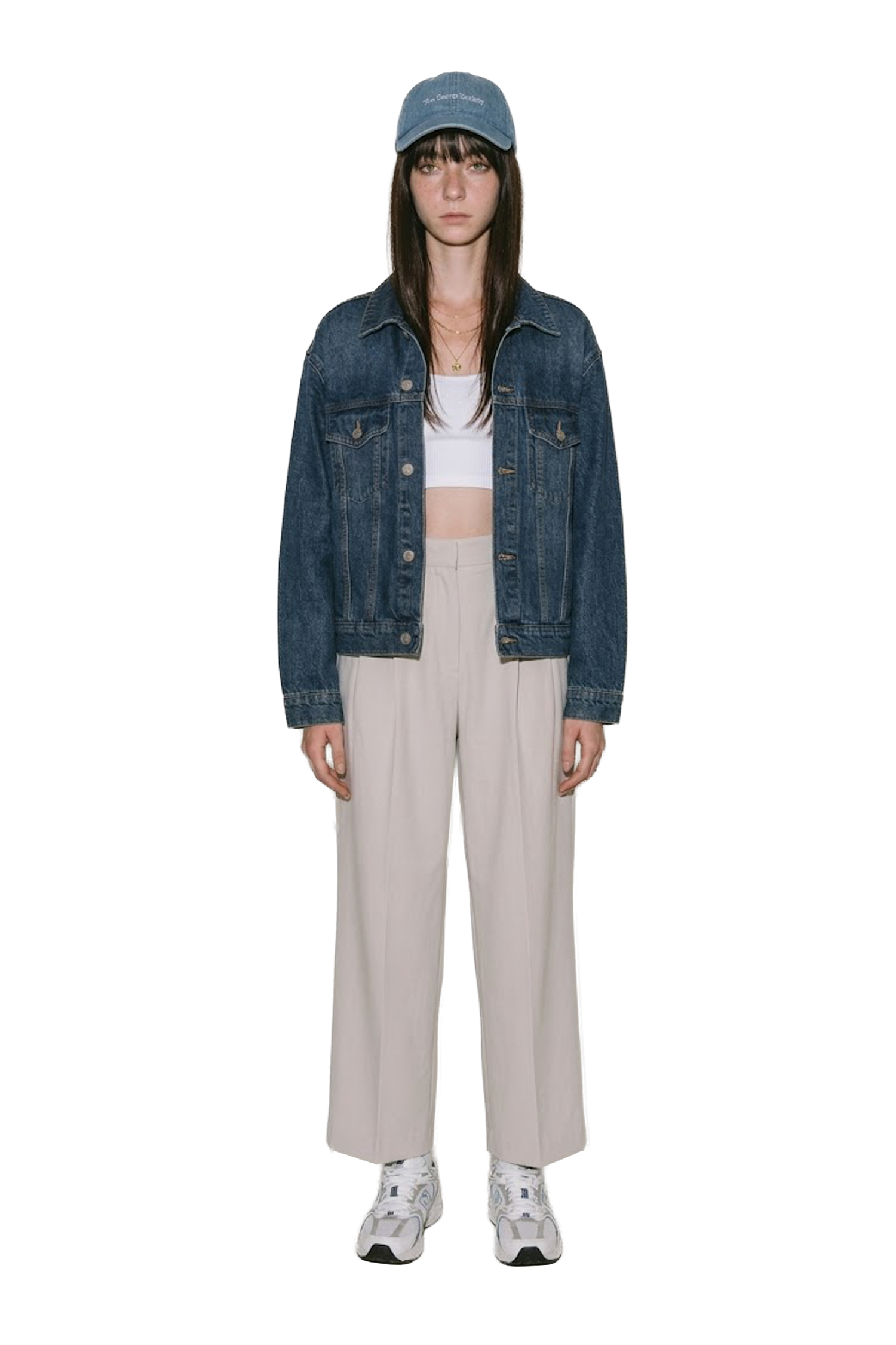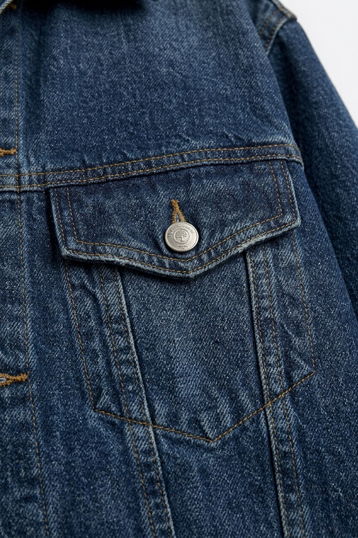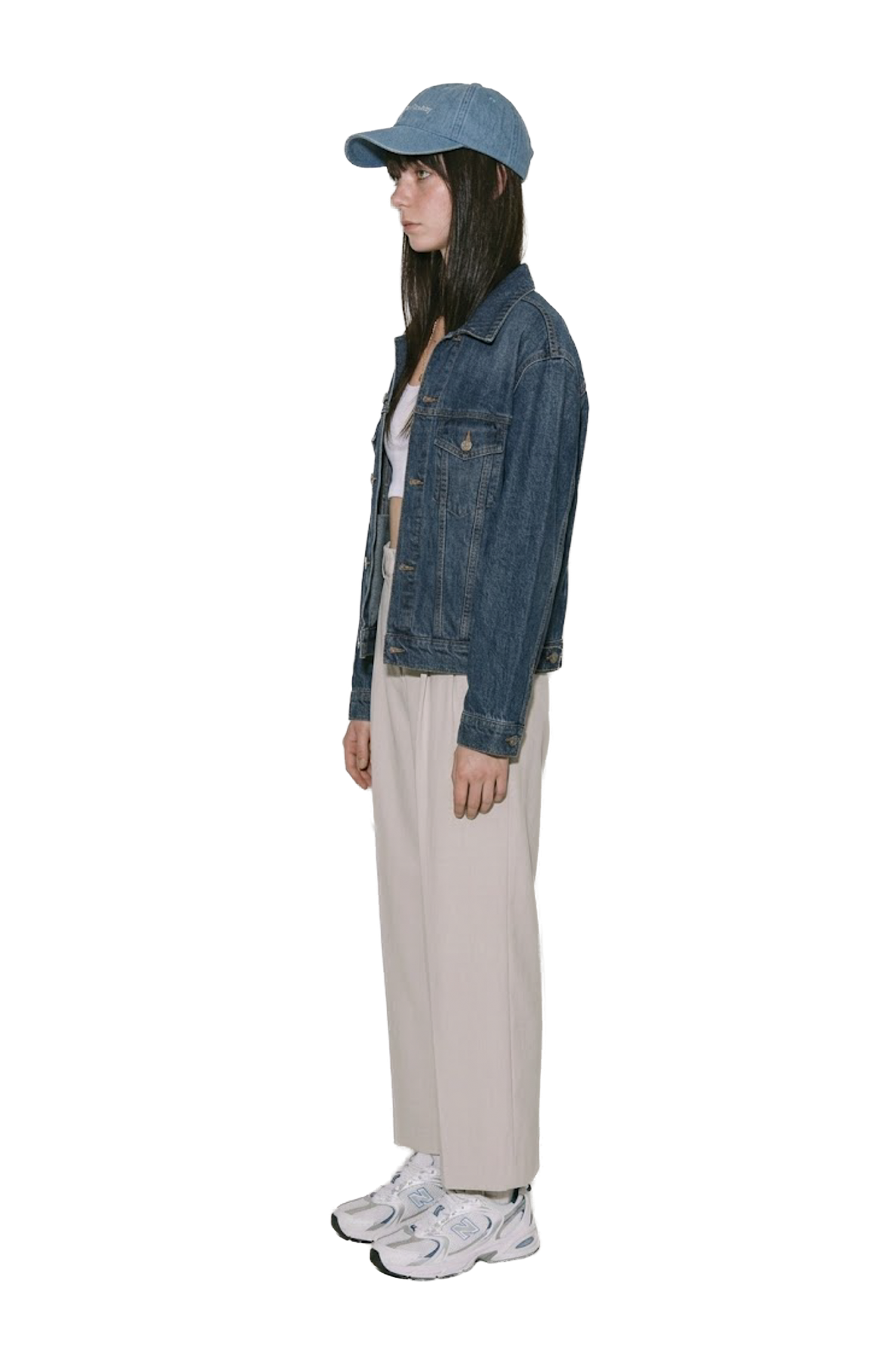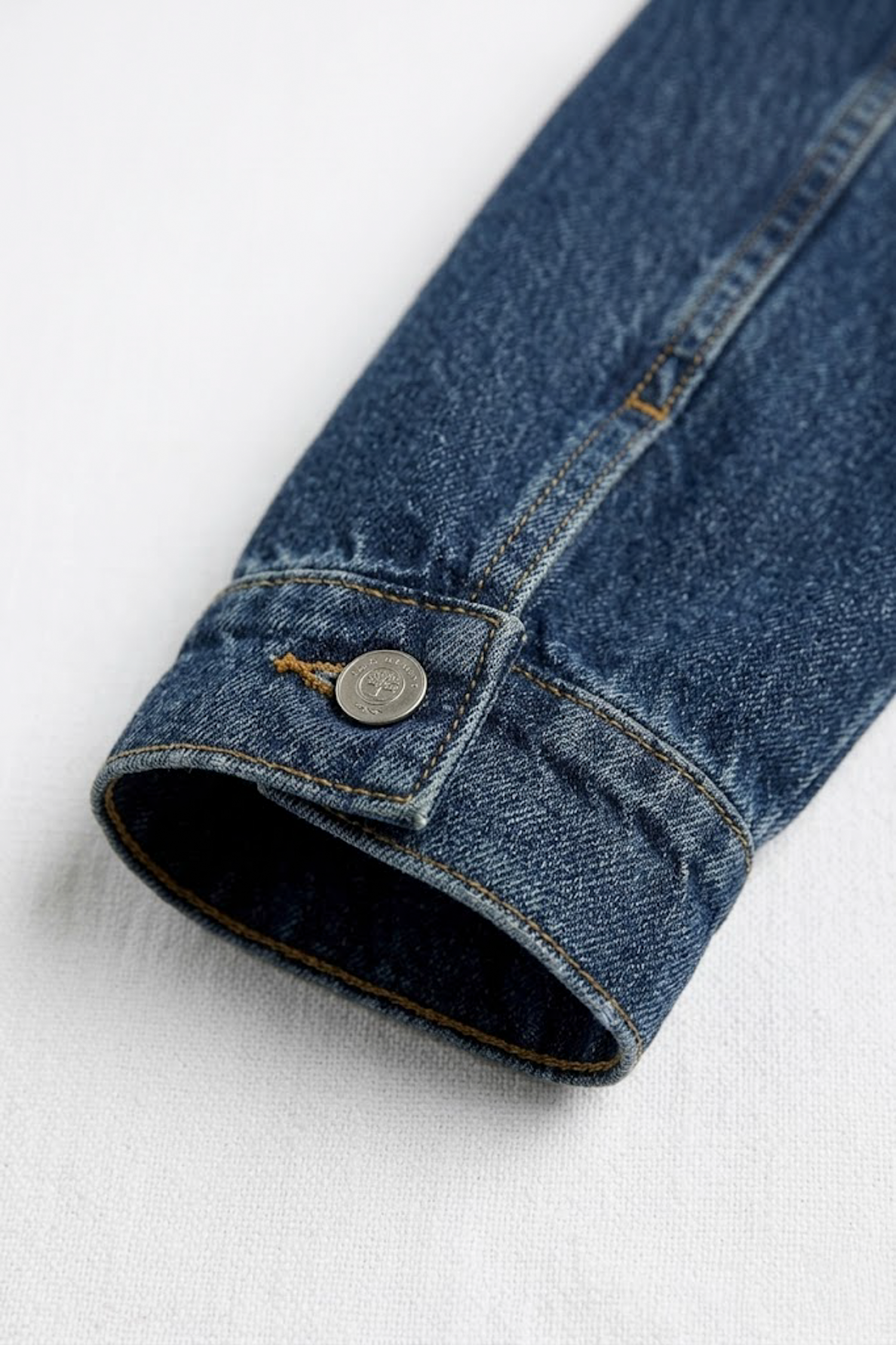 石洗工藝: 經過深藍石洗處理,呈現自然的復古磨損感,讓面料更具呼吸感與柔軟度。