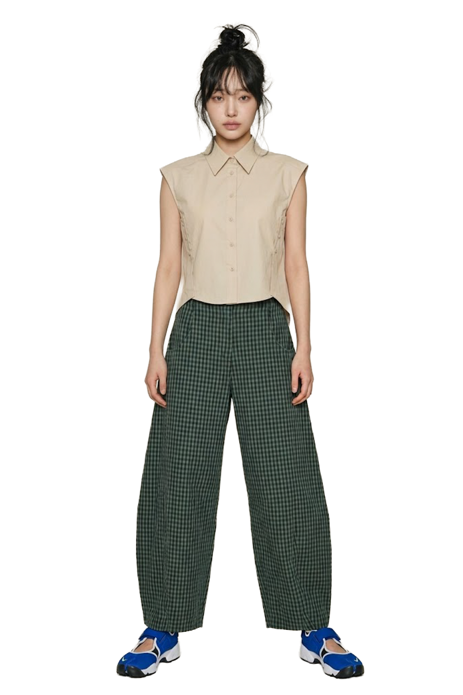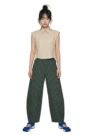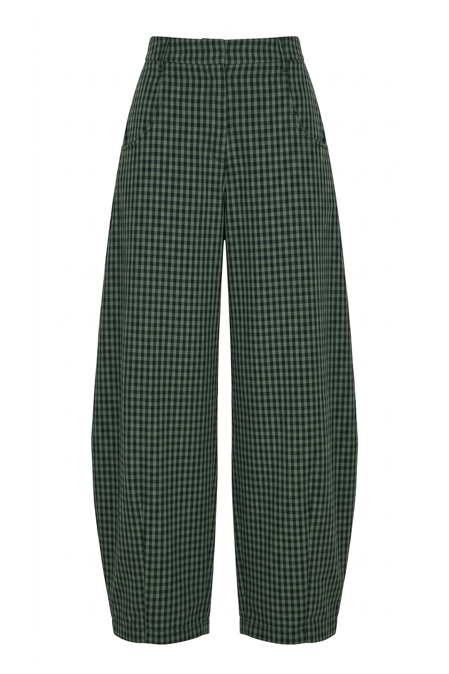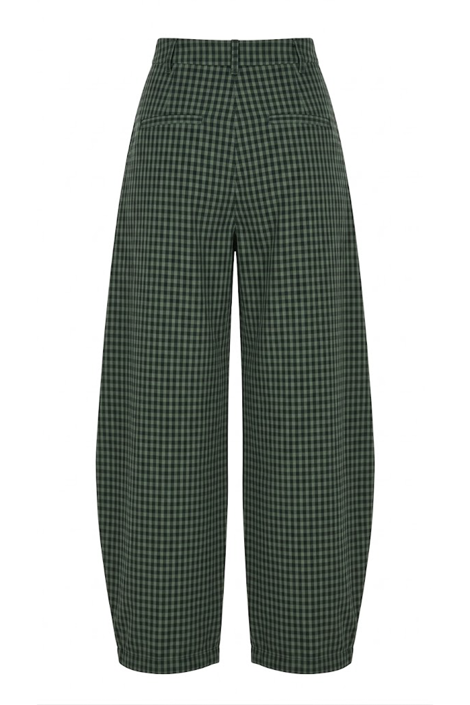 復古綠格紋氣球版型高腰長褲