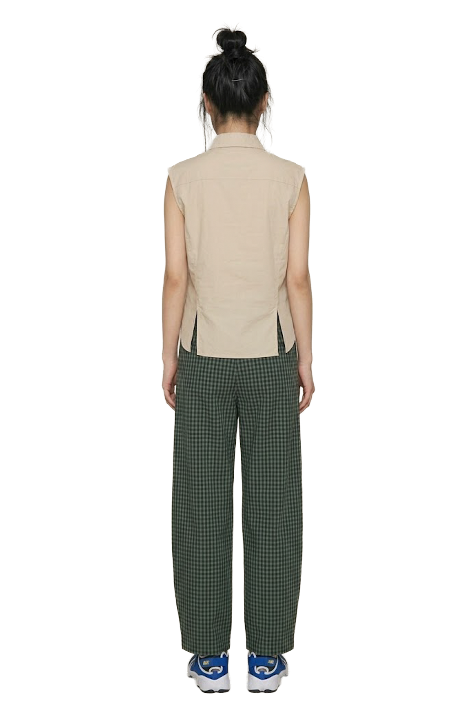 反面清洗: 洗滌前請將褲子翻面並放入洗衣袋,可減少格紋面料與其他衣物摩擦導致的色澤損耗。