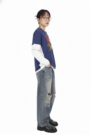30°C 反面弱速洗滌:由於是深藍與白色的拼接,建議翻面洗滌且不宜長時間浸泡,以防止深藍色面料產生微量移色。