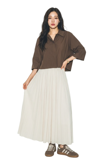 落肩寬鬆剪裁: 舒適的落肩與廓形設計,能修飾肩線並容納多層次穿搭。