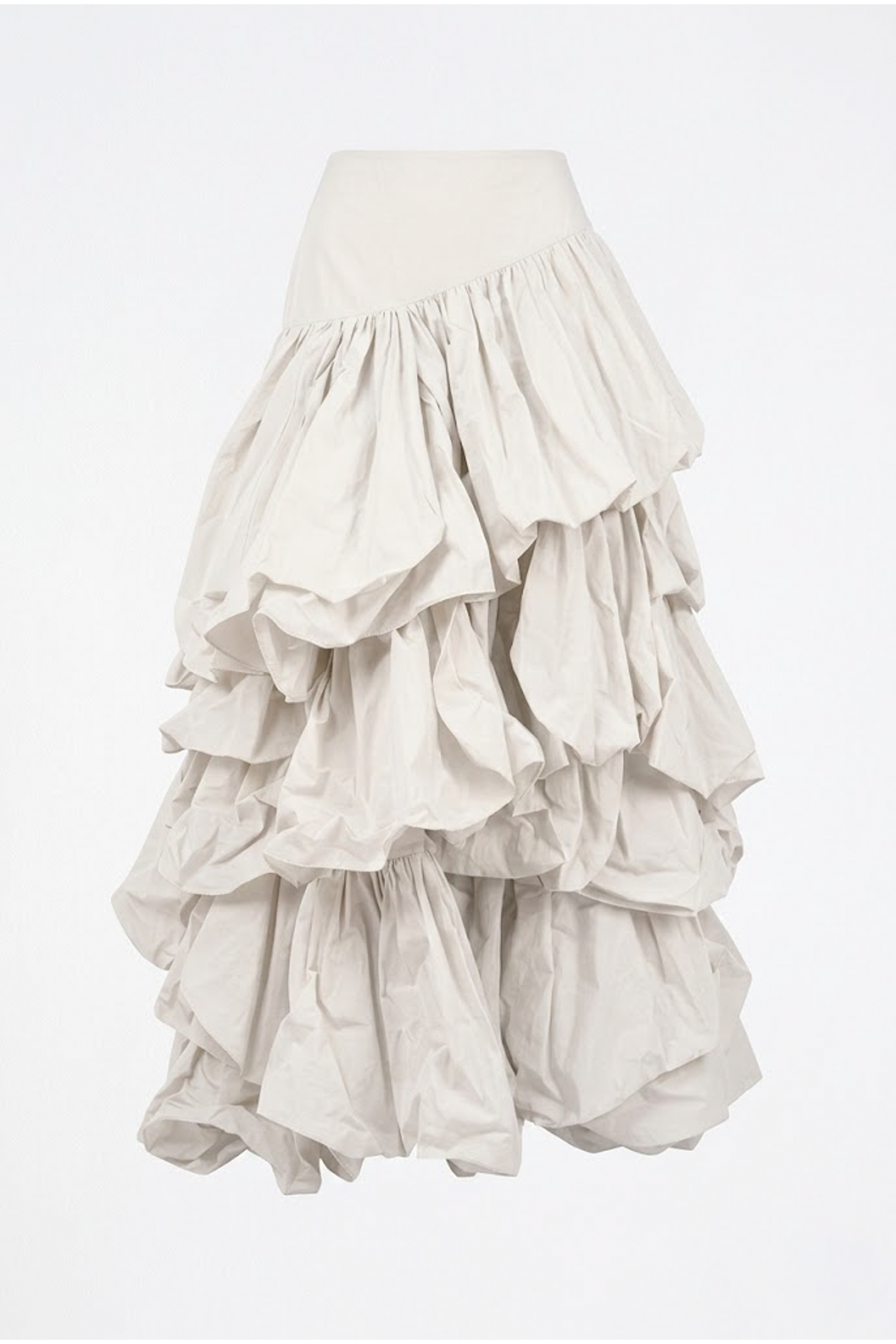 卡其白多層次荷葉解構長裙