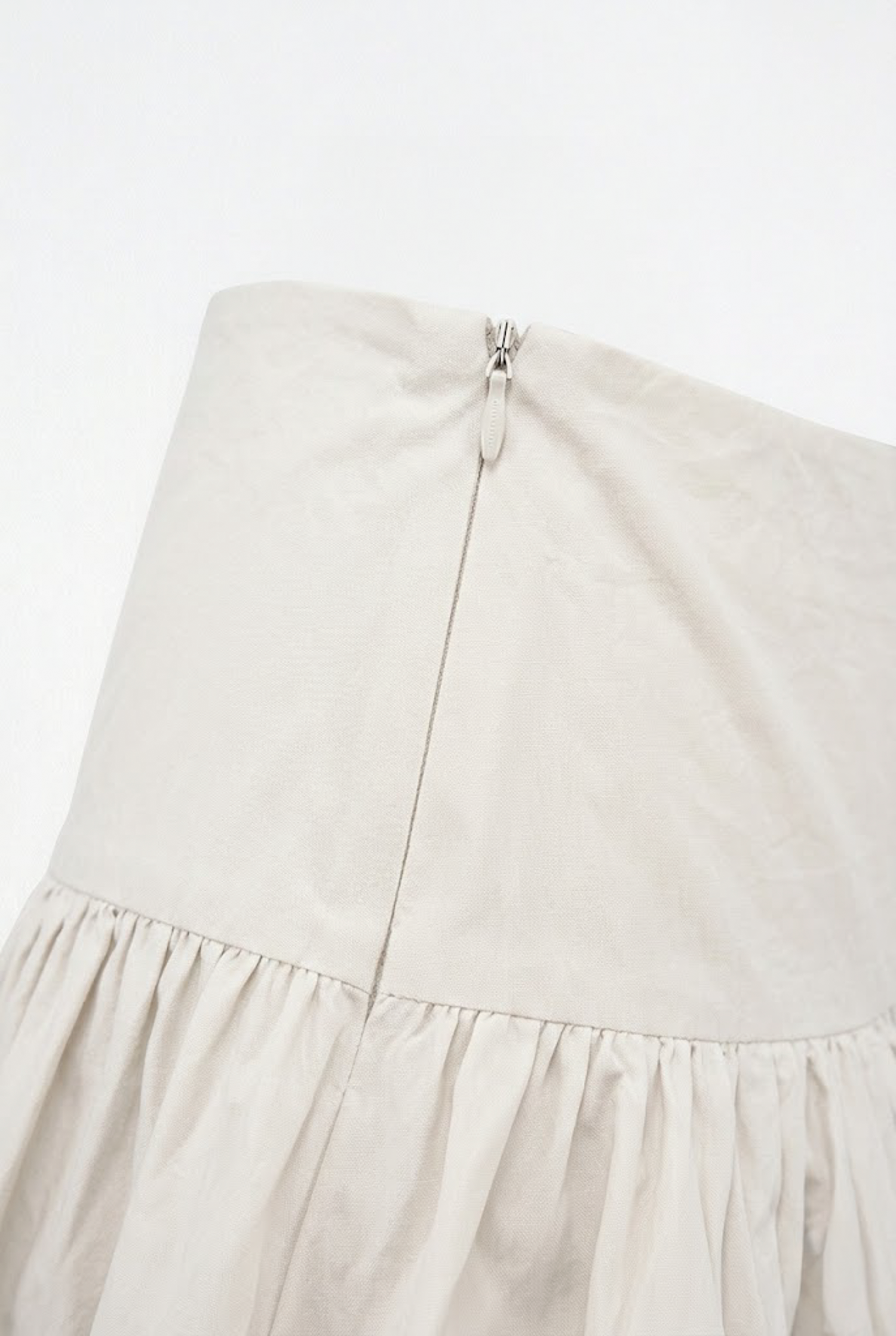 面料:水洗棉麻 (Washed Cotton Linen) 。這種材質能維持荷葉邊的蓬鬆與挺度,同時帶有天然的肌理感,完美呈現解構風格的率性。