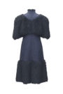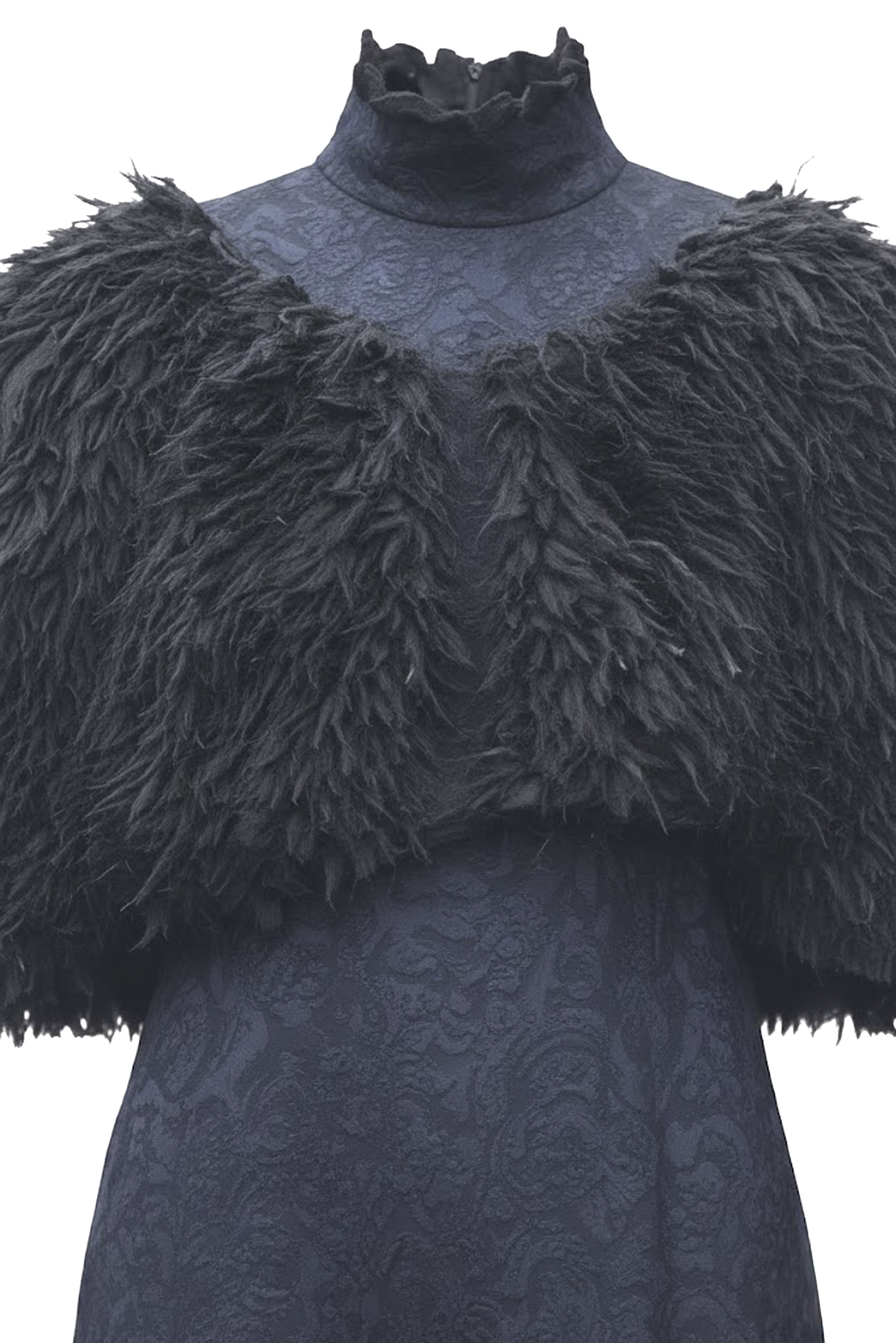 魚尾感毛絨下襬:裙襬底部的毛絨增加垂墜份量,行走時極具動態美。