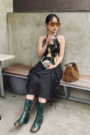 黑白大格紋不對稱斜下擺長裙