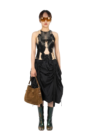 塵爆堆疊層次網紗皮革吊帶洋裝