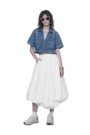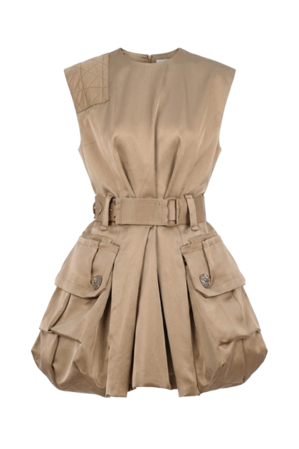 無感抽褶技術:側邊的抽繩細節與高彈力布料結合,可以隨意調整裙長,製造出細密的、如雲朵般的抓褶效果。