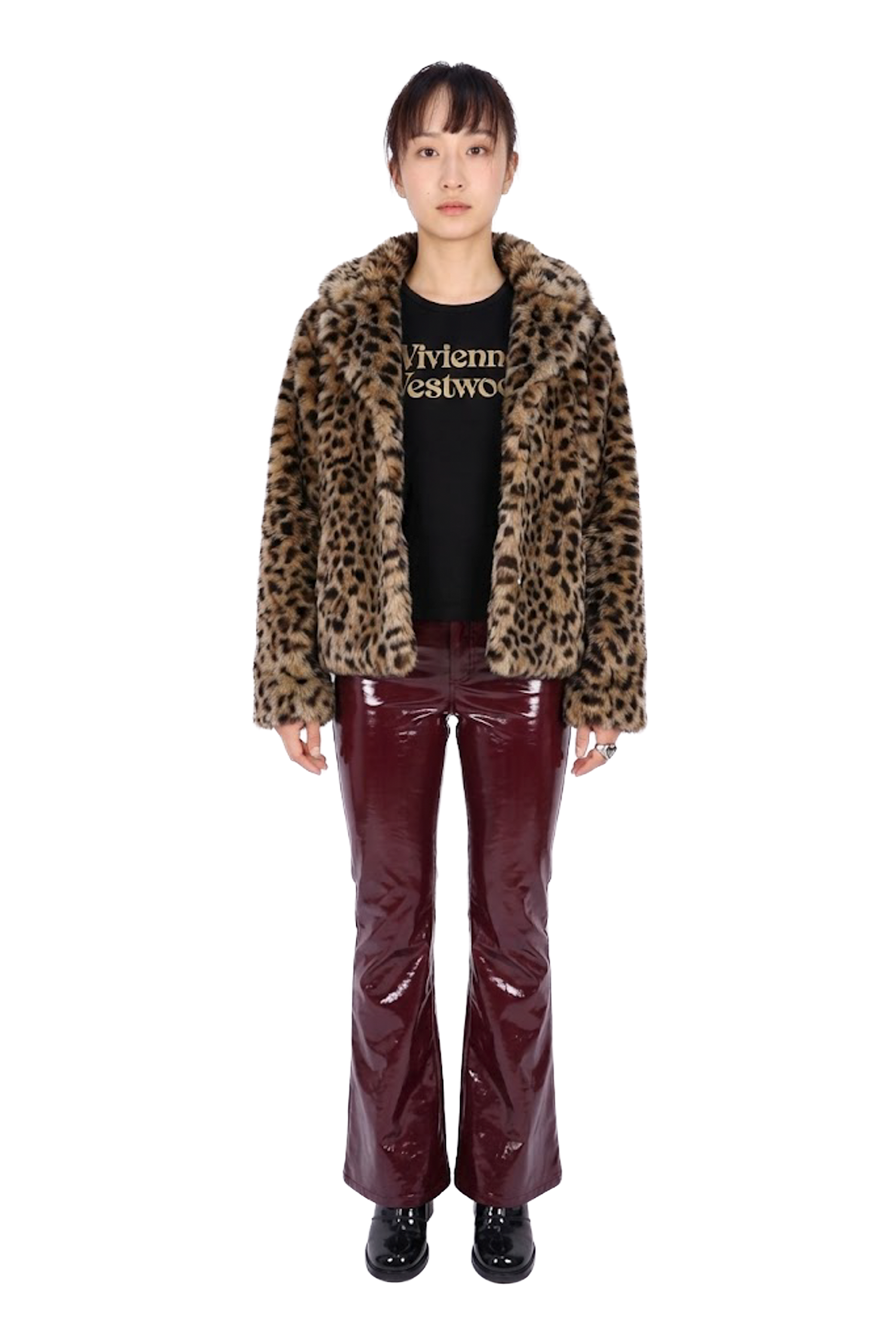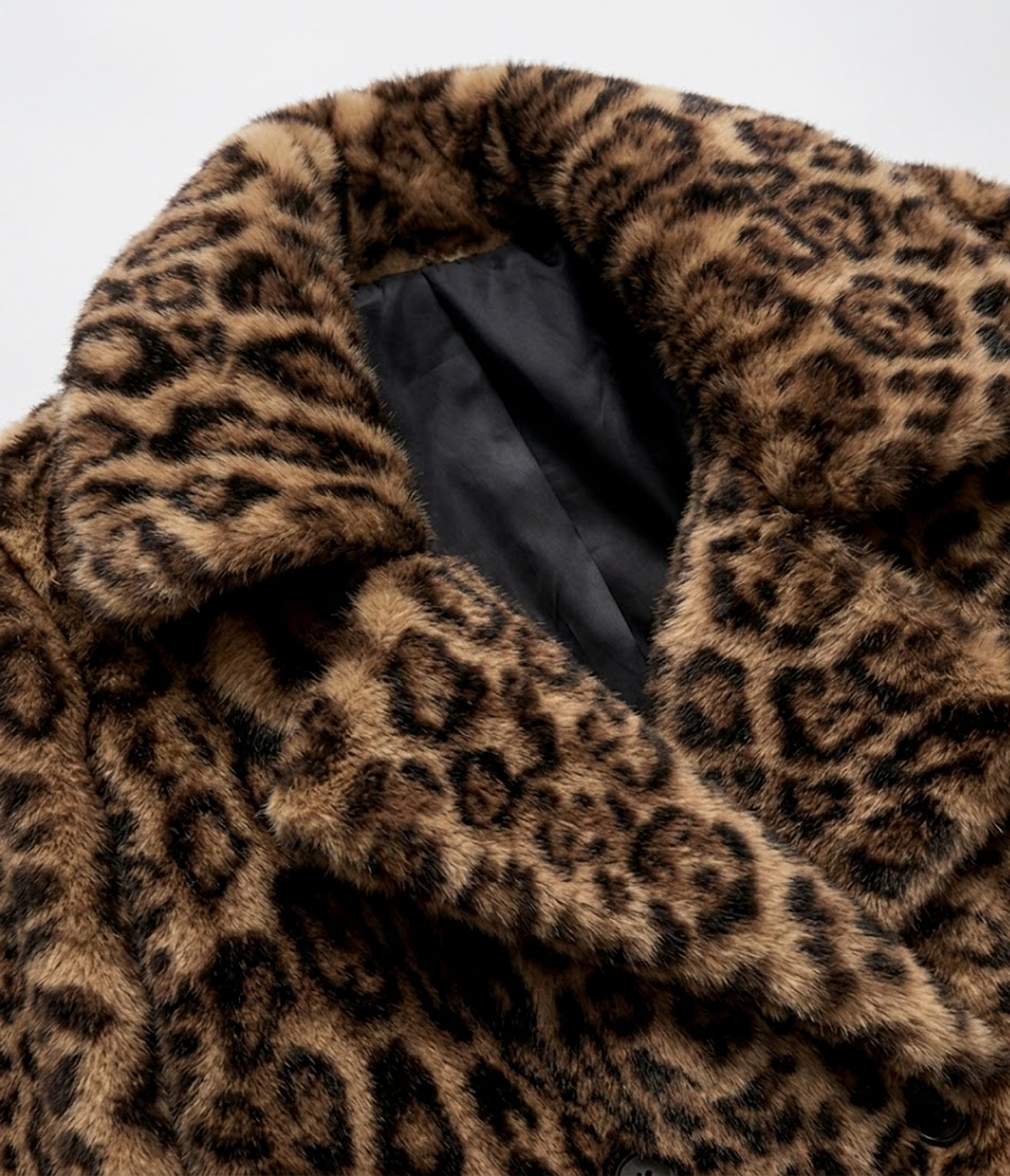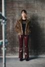 廓形剪裁 (Boxy Fit):略微寬鬆的箱型剪裁,長度約落在胯部,平衡了豹紋的厚重感,顯得俐落不臃腫。