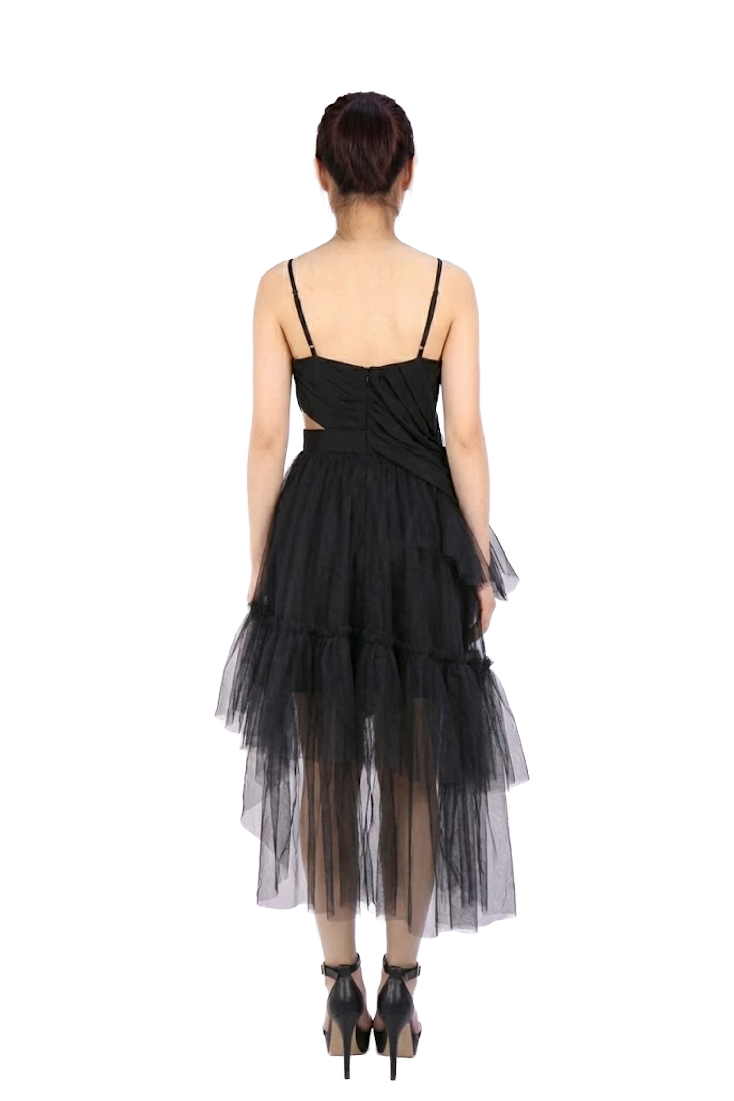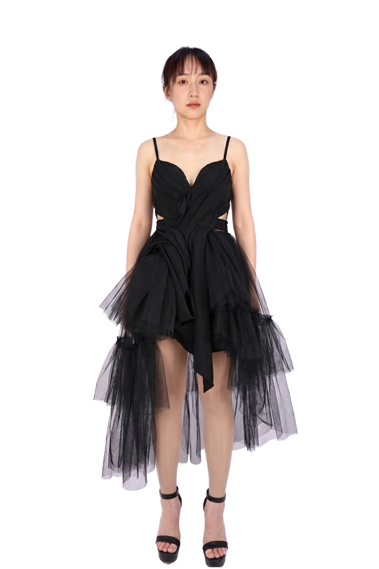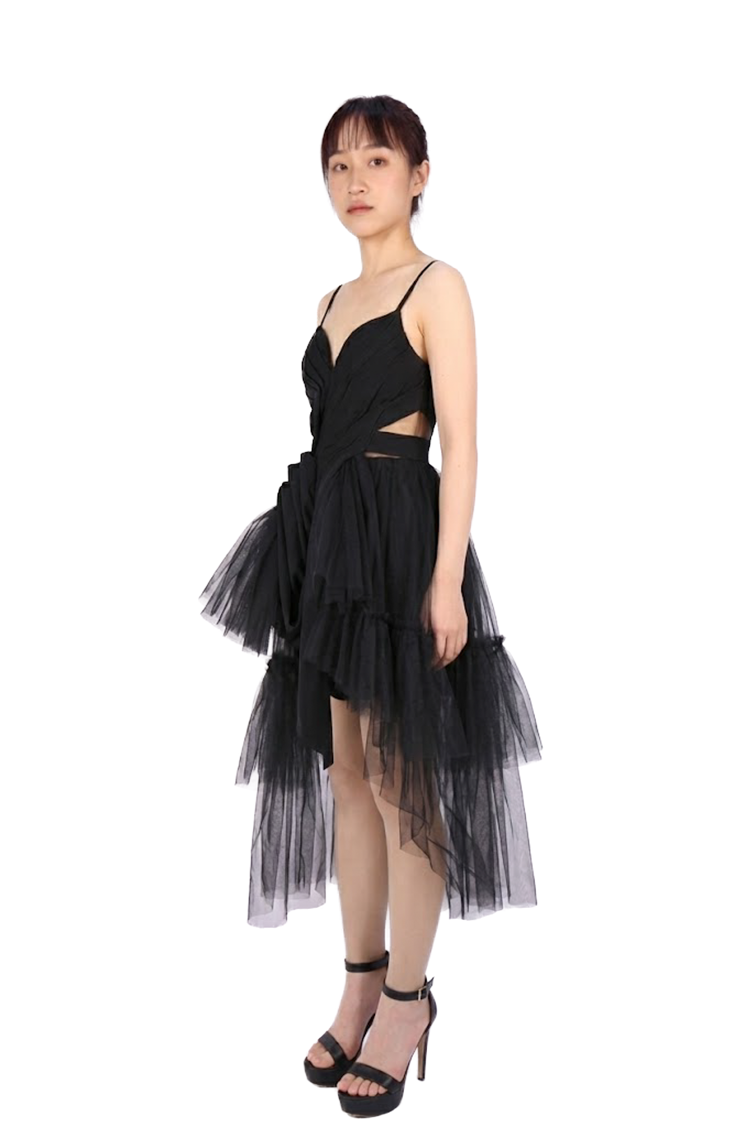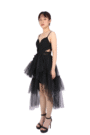 黑色細肩帶解構雪紡洋裝