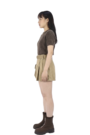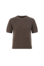 咖啡色麻花編織短袖毛衣